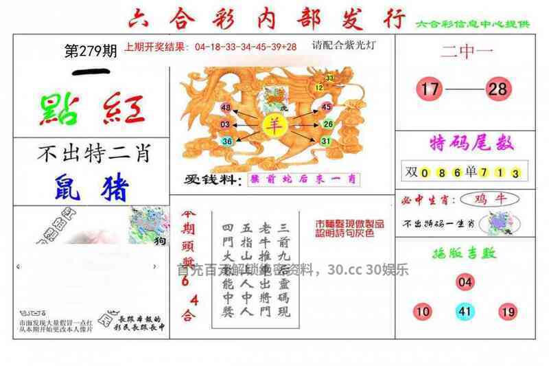 281期:天地+二肖〖天肖+鸡鼠〗开:羊47错 |
