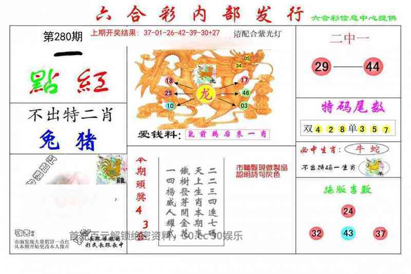280期:天地+二肖〖天肖+鼠蛇〗开:鼠42准 |