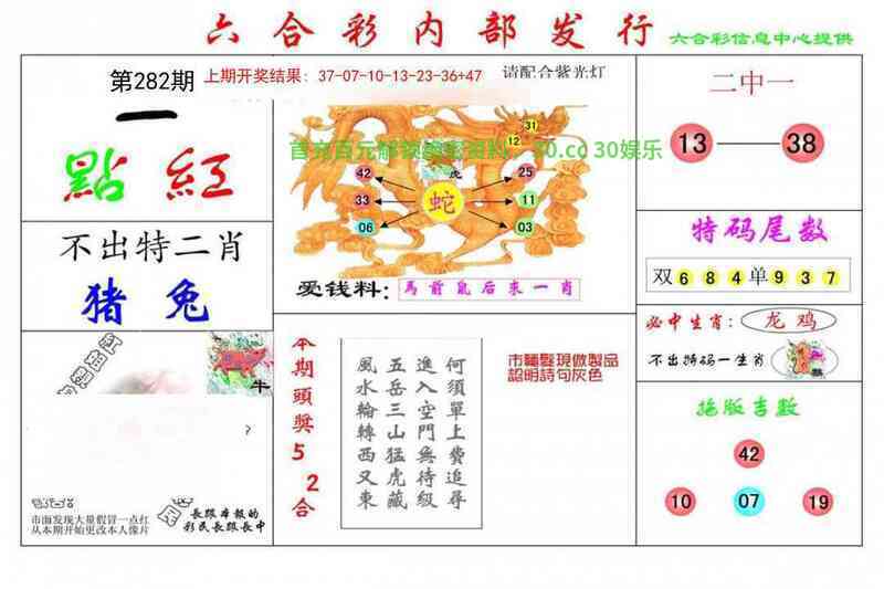 282期:天地+二肖〖天肖+鼠羊〗开:牛41准 |